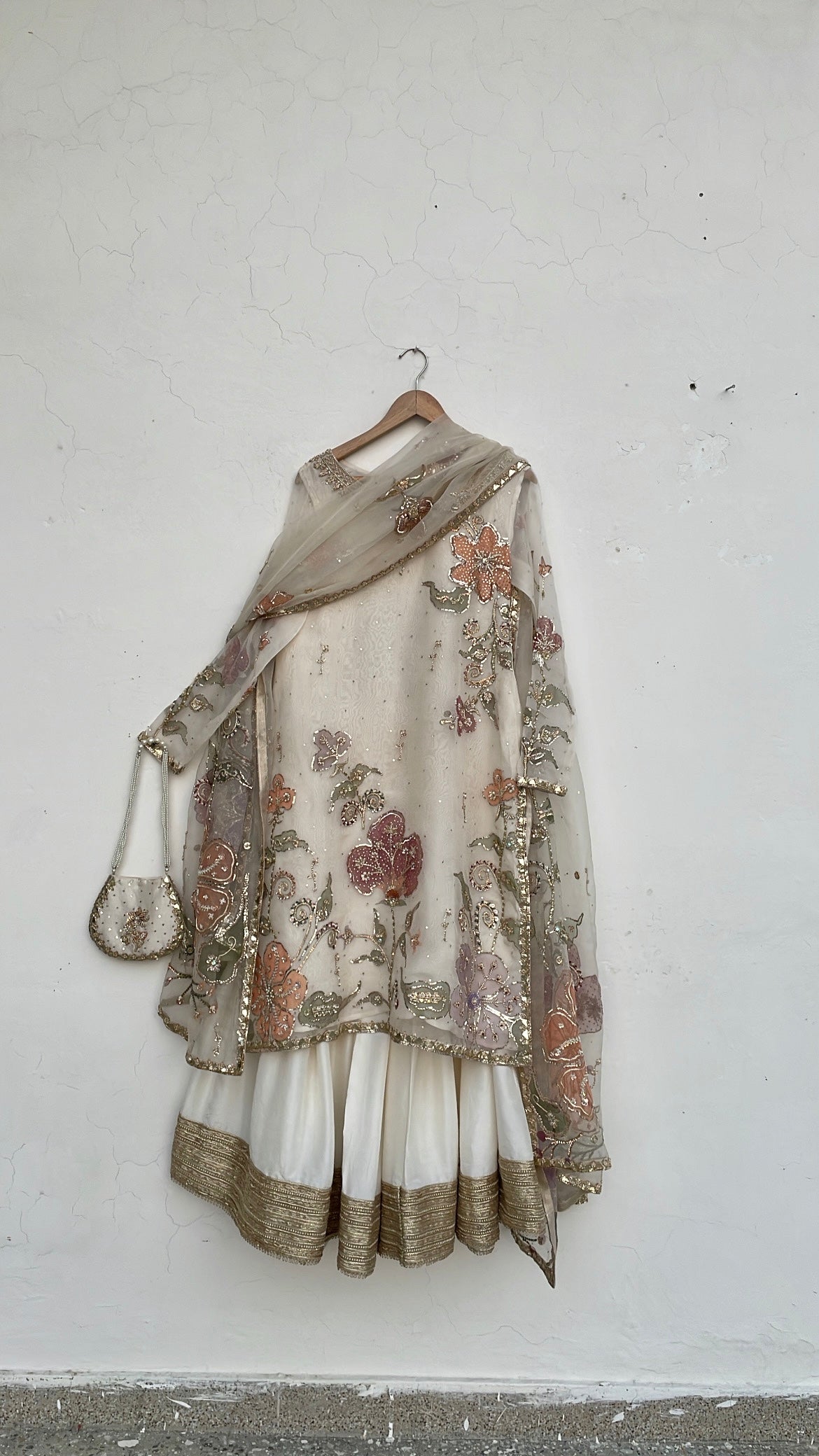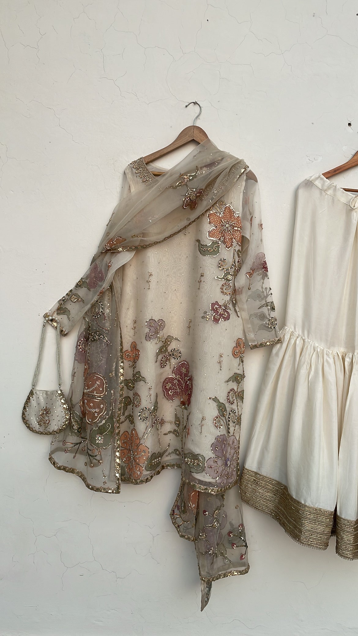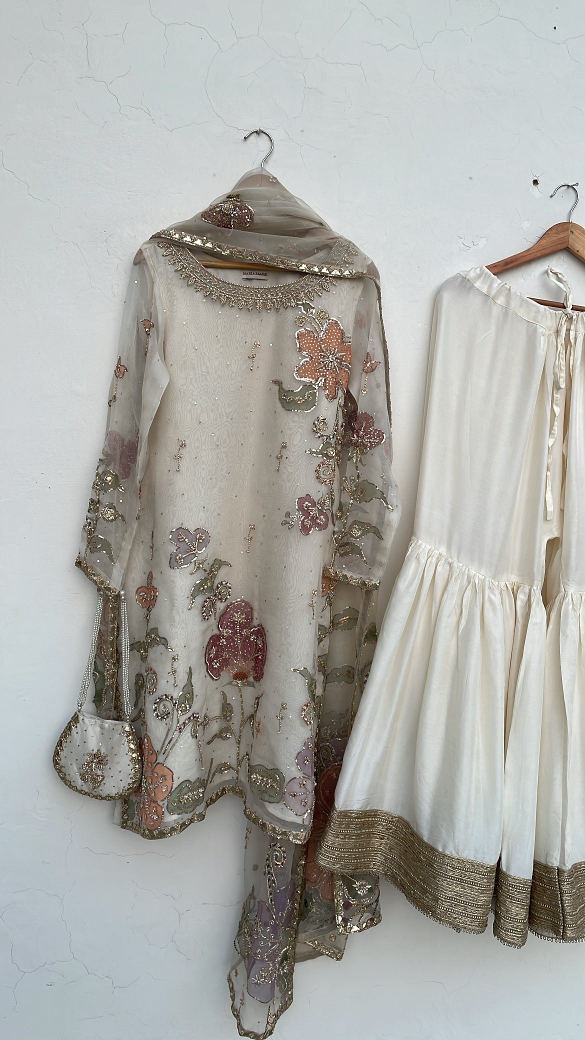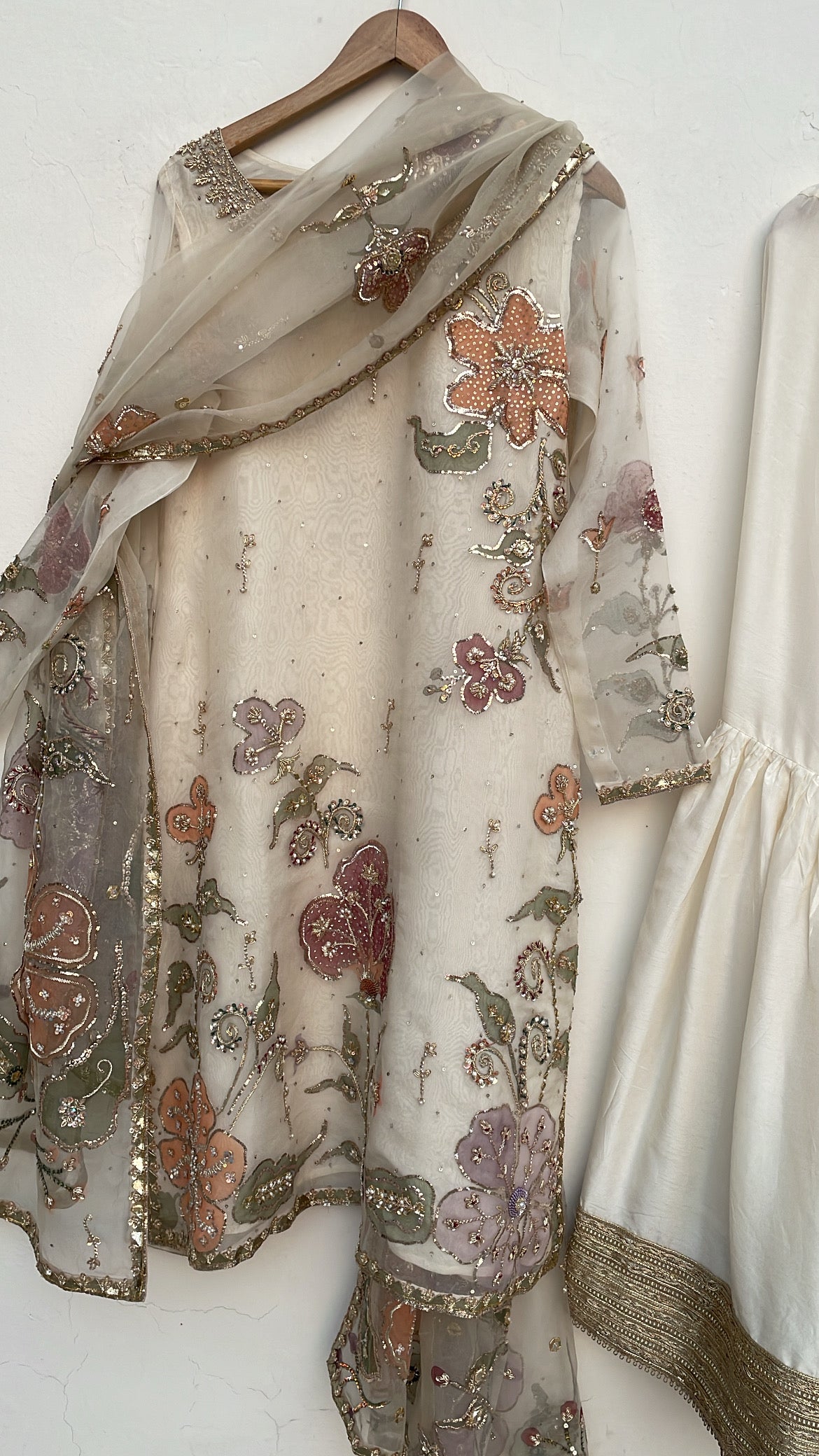 Discover the Azra festive collection, a meticulously curated three-piece ensemble designed for life's most significant celebrations. This distinguished offering features a handpainted pure organza dupatta harmoniously paired with an ornately embellished handpainted organza shirt and coordinating raw silk gharara. Ideal for weddings, engagements, and festive occasions, each component exemplifies superior artisanal execution and premium material selection. The Azra collection represents a refined choice for those seeking to honor cultural heritage while projecting contemporary sophistication and graceful elegance at formal events.