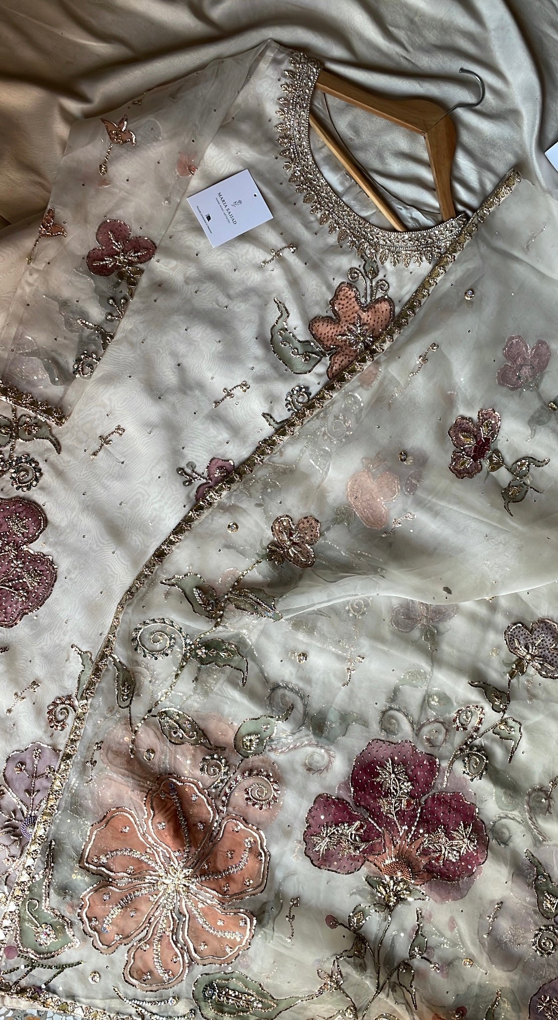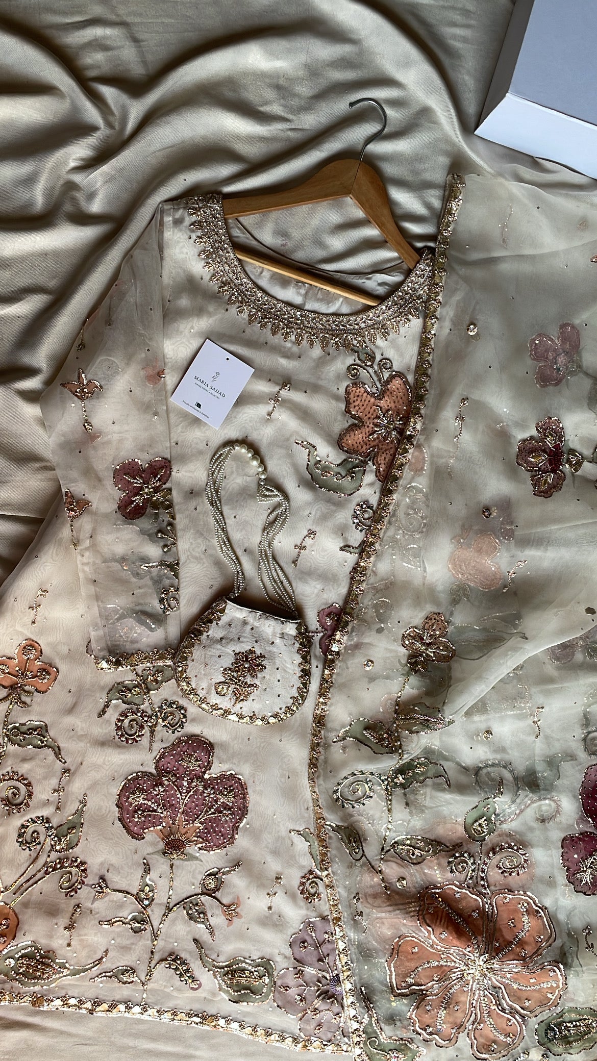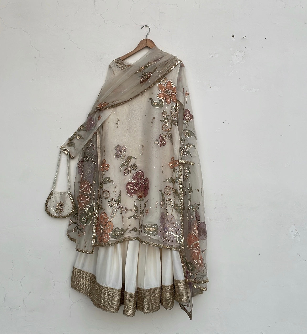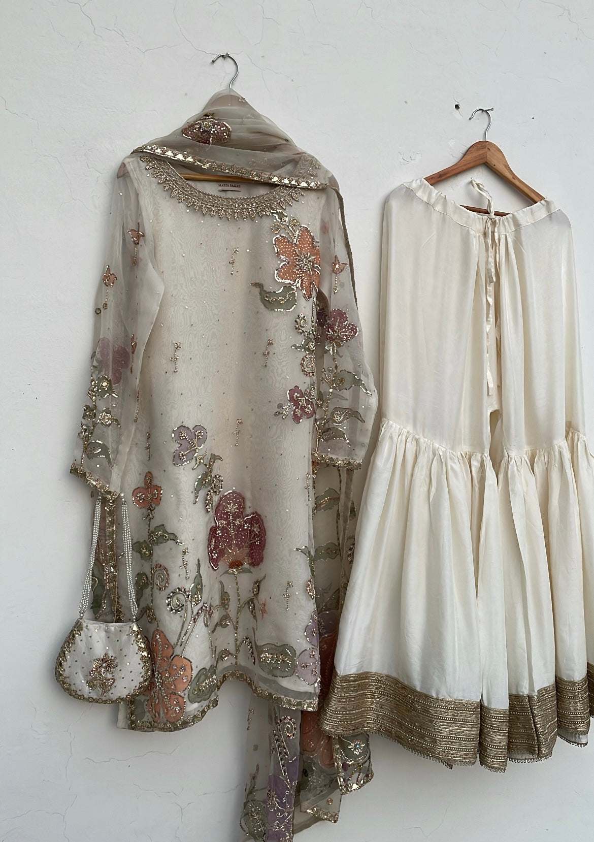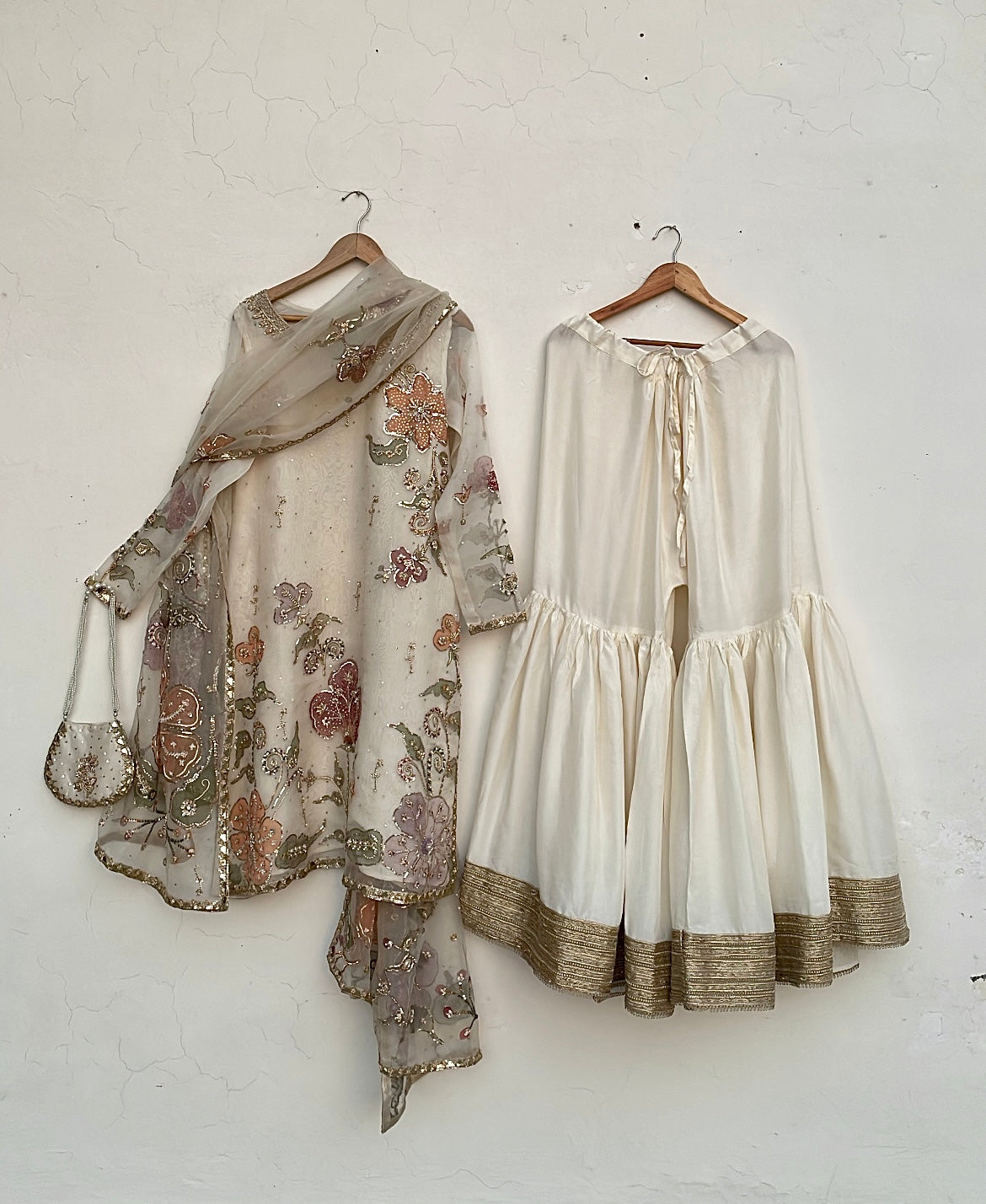 Discover the Azra festive collection, a meticulously curated three-piece ensemble designed for life's most significant celebrations. This distinguished offering features a handpainted pure organza dupatta harmoniously paired with an ornately embellished handpainted organza shirt and coordinating raw silk gharara. Ideal for weddings, engagements, and festive occasions, each component exemplifies superior artisanal execution and premium material selection. The Azra collection represents a refined choice for those seeking to honor cultural heritage while projecting contemporary sophistication and graceful elegance at formal events.