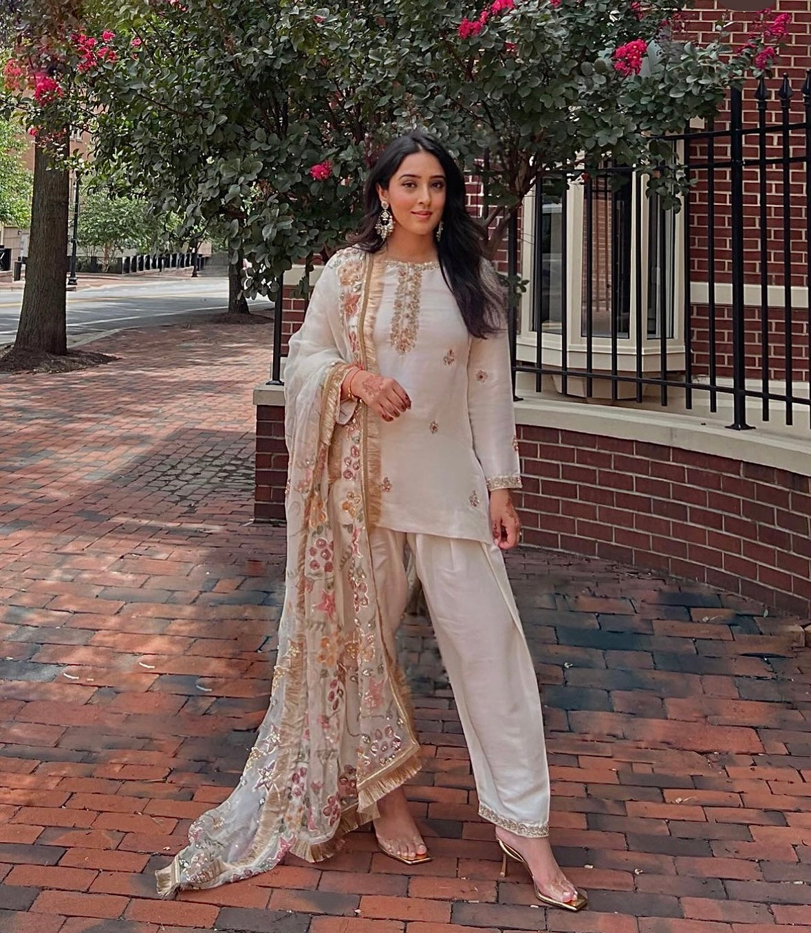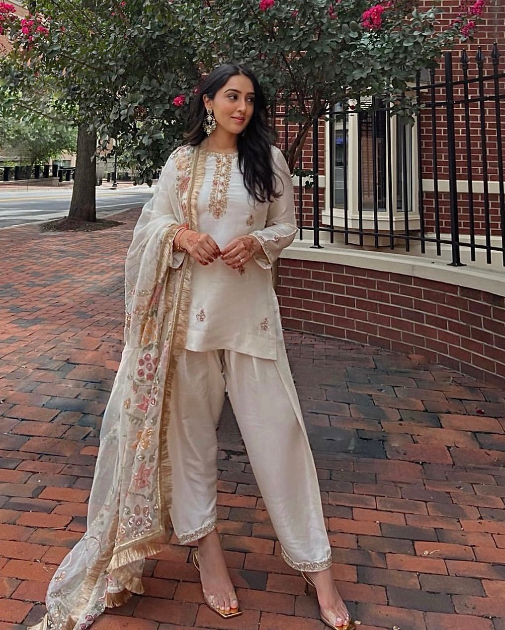Discover refined elegance with the Client Diary collection, a meticulously assembled three-piece festive ensemble crafted for significant life moments. This distinguished set unites a handpainted pure organza dupatta with an ornately embellished raw silk kurta and coordinating raw silk churidar, forming a cohesive statement of sophistication. Designed for weddings, engagements, and celebrations, each component reflects superior artisanal execution and luxurious material selection, enabling you to project both cultural pride and graceful presence.