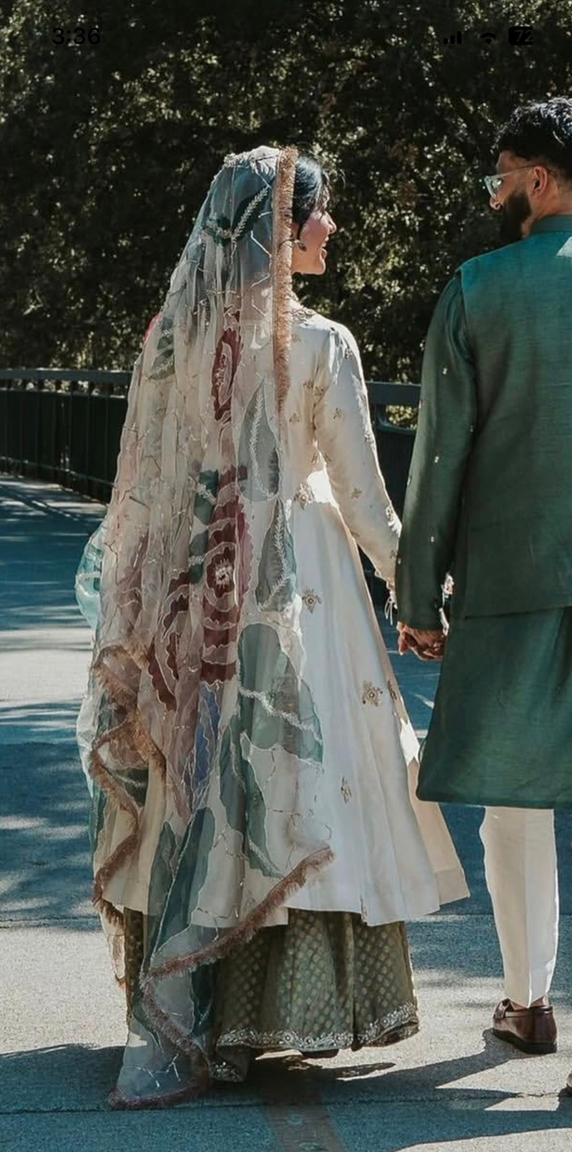 Celebrate tradition with elegance in our Kudmai festive wear ensemble a timeless three-piece stitched outfit designed for special occasions. This curated set features a handpainted pure organza dupatta, beautifully paired with a raw silk embellished shirt and matching raw silk churidar pants.