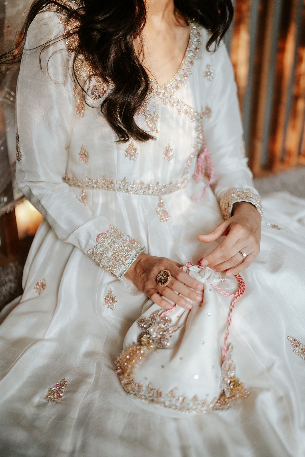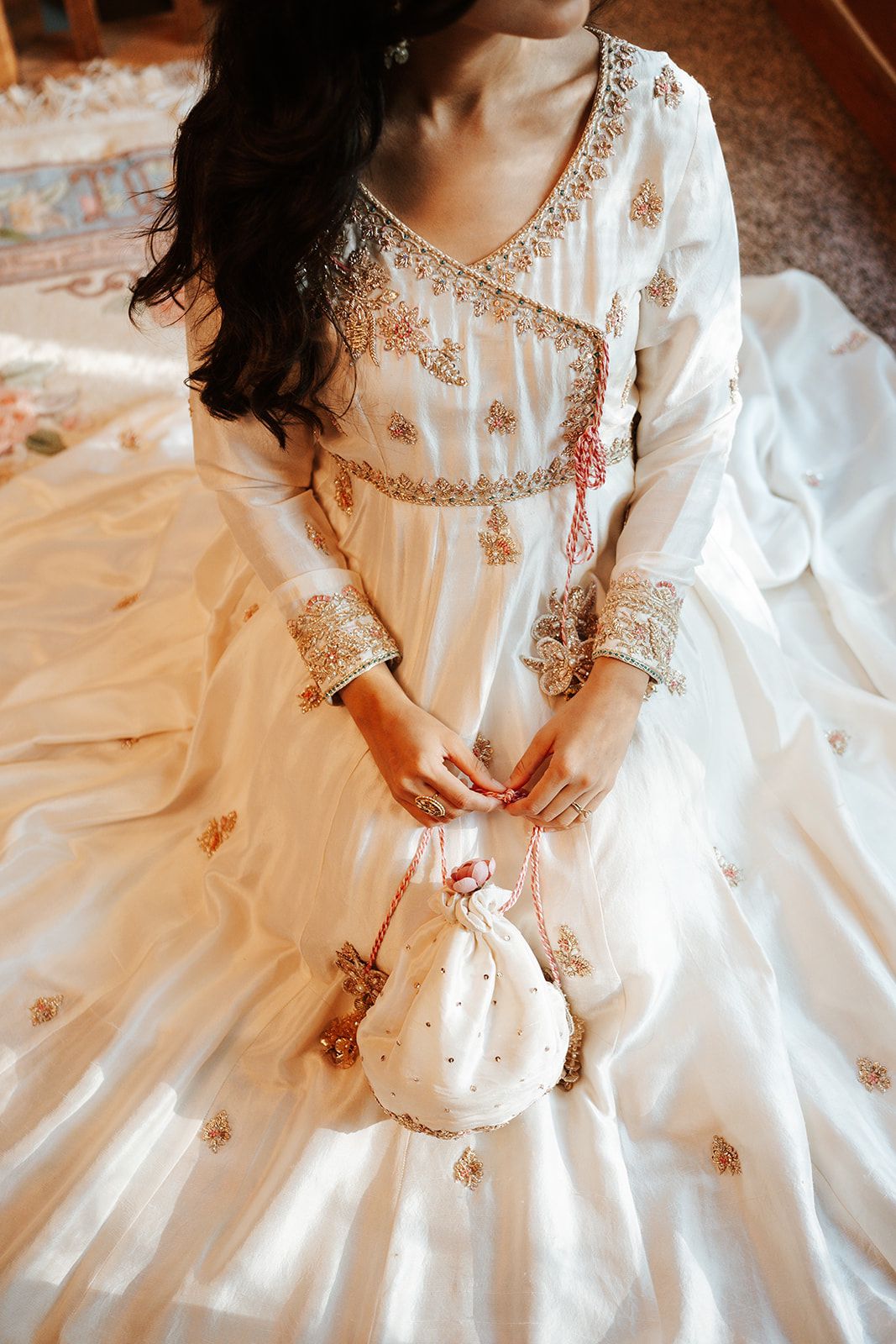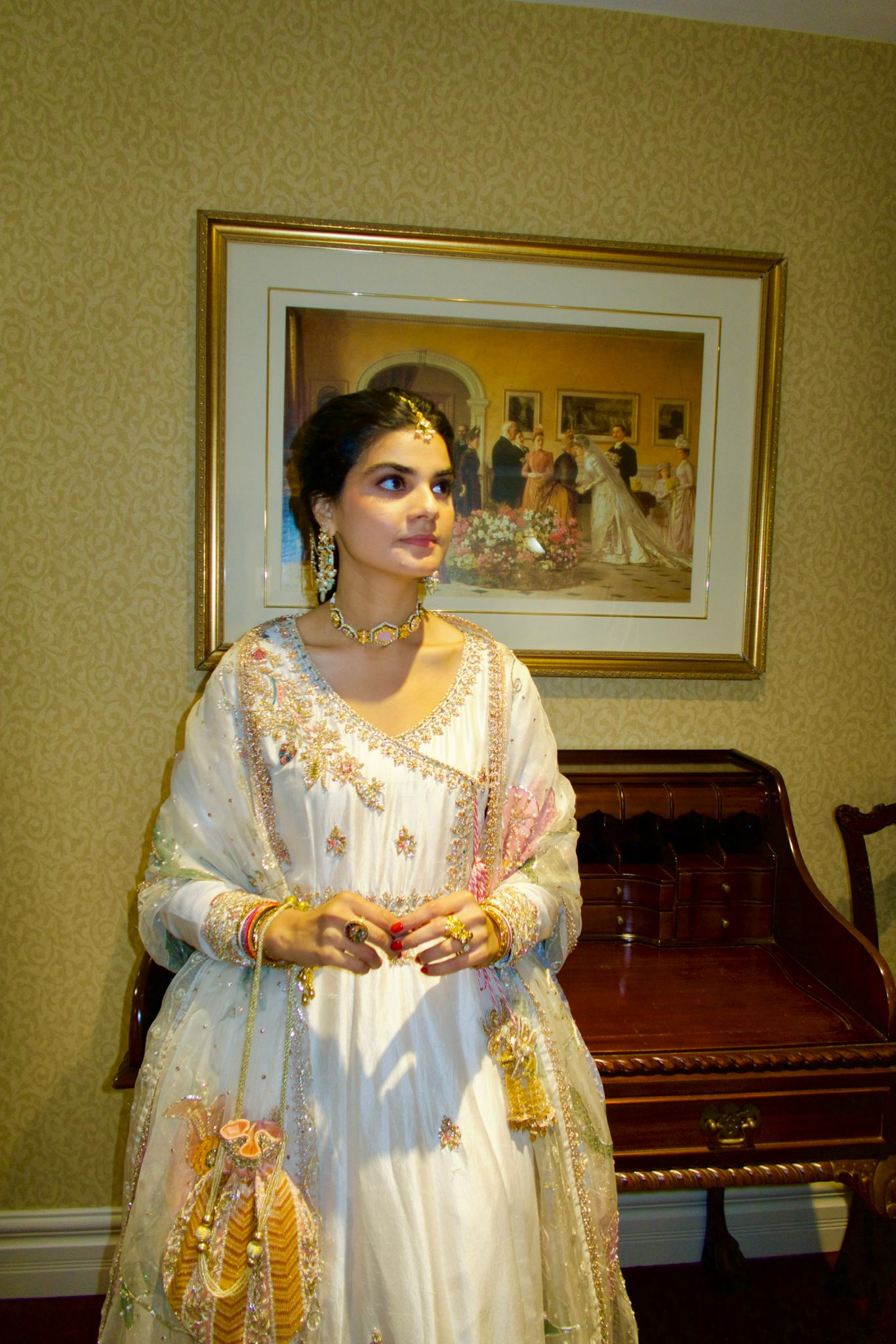 Experience refined sophistication with our Kudmai festive collection, a meticulously crafted three-piece ensemble tailored for life's most memorable moments. This sophisticated set combines a hand-painted pure organza dupatta with an intricately embellished raw silk kurta and coordinating raw silk churidar, each element selected to reflect superior artisanal quality. Ideal for weddings, engagements, and celebratory occasions, this ensemble delivers the polished elegance and premium craftsmanship that distinguishes truly exceptional festive wear.