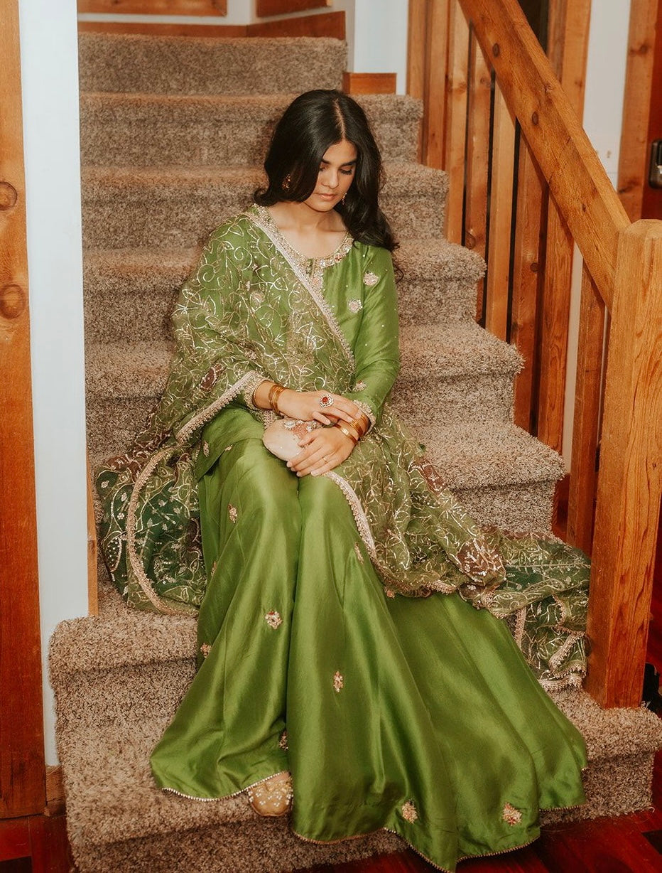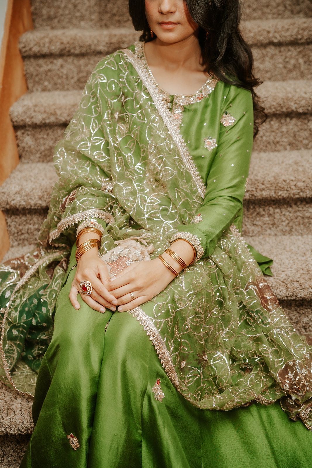 Experience the refined artistry of traditional festive fashion with this meticulously crafted three-piece ensemble. Featuring a hand-painted pure organza dupatta that drapes with ethereal grace, paired alongside an intricately embellished raw silk kurta and coordinating raw silk churidar, this collection embodies sophisticated elegance. Each component reflects superior craftsmanship and premium materials, making it an ideal choice for weddings, engagements, and significant celebrations. The harmonious blend of luxurious textures and detailed embroidery creates a cohesive look that elevates your presence at any formal occasion.