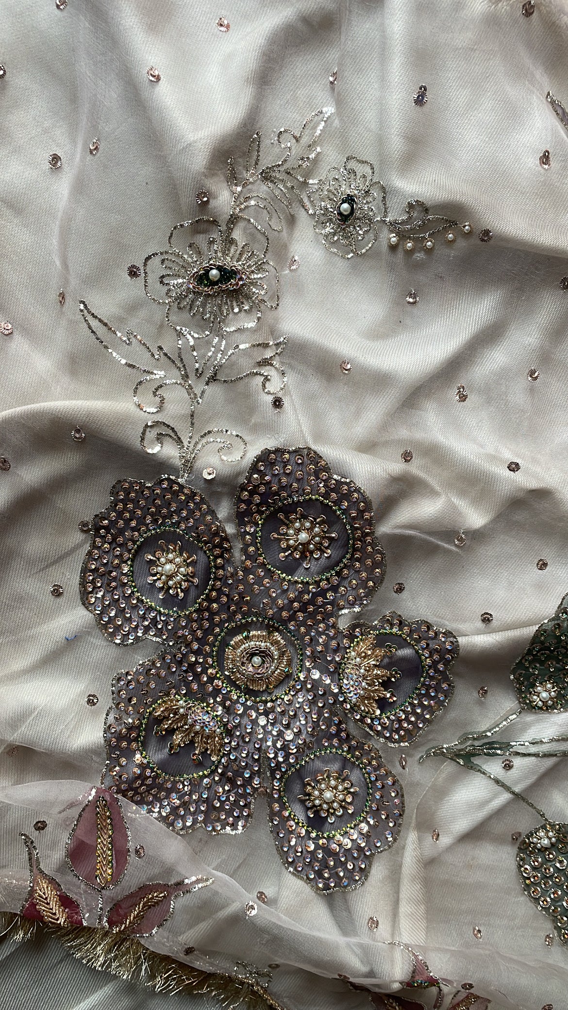 Elevate your ethnic wardrobe with this elegant formal Handpainted Duppata, a perfect blend of tradition and artistry. Crafted on fine fabric, each piece is thoughtfully handpainted by skilled artisans, making it truly one of a kind.