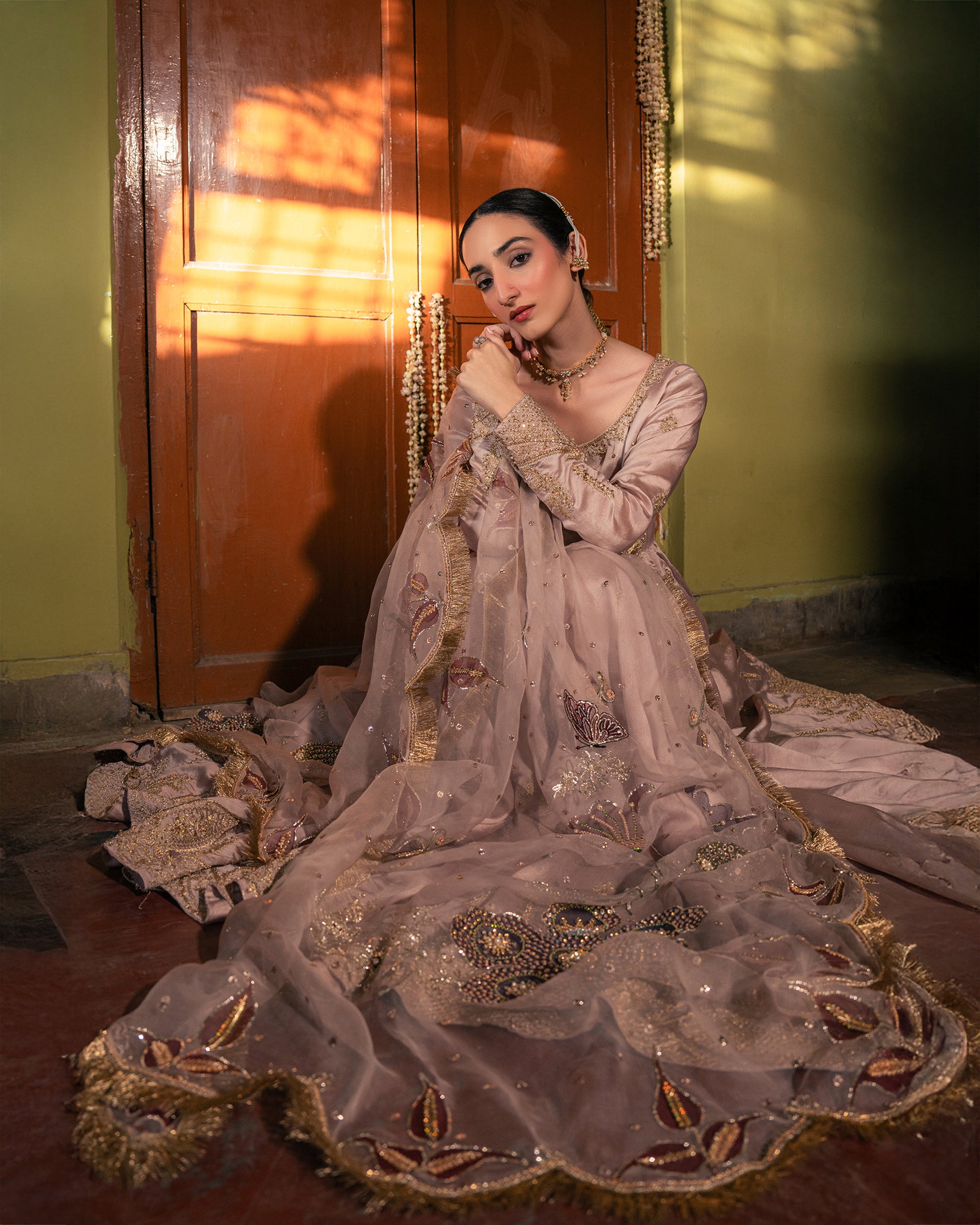 Discover timeless sophistication with our Kudmai Peshwas collection—a meticulously crafted three-piece ensemble that marries traditional artistry with contemporary elegance. Featuring a handpainted pure organza dupatta adorned with intricate embroidery, paired with an ornate tassel silk Peshwas and coordinating churidar, this set exemplifies refined craftsmanship. Each piece showcases premium tassel silk construction and detailed embellishments, making it an ideal choice for weddings, pre-wedding celebrations, and formal festive occasions where understated luxury meets cultural heritage.