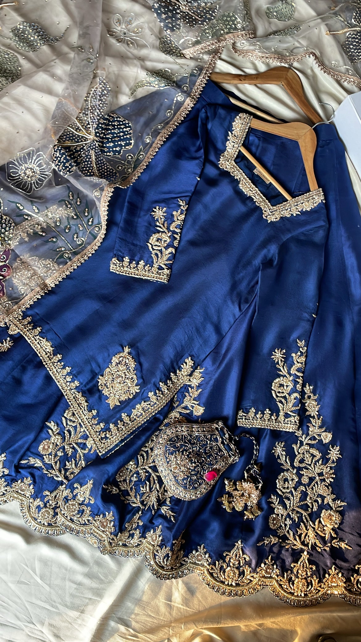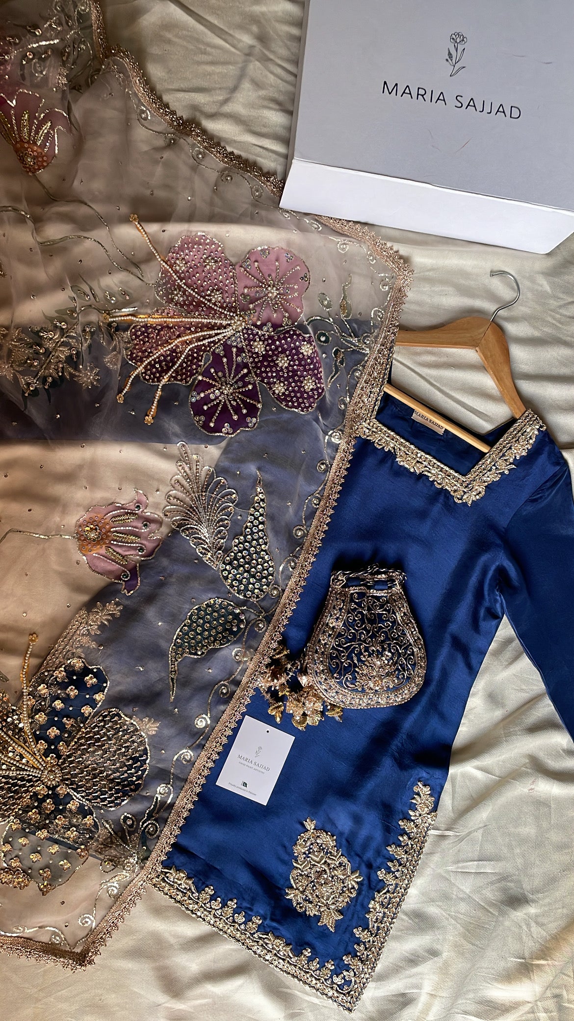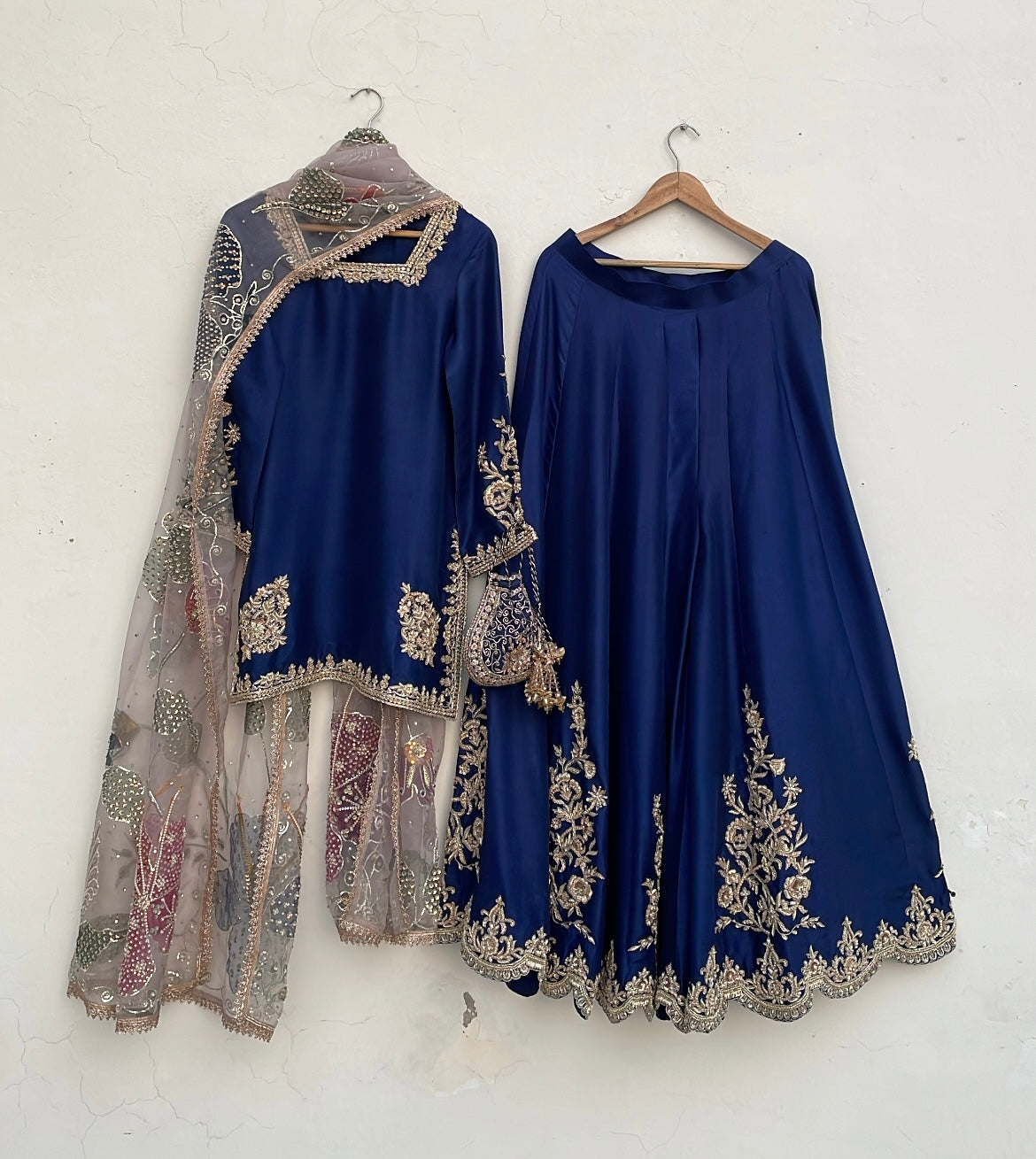 Experience timeless sophistication with Gulbahar, a masterfully assembled three-piece festive collection crafted for your most cherished celebrations. This distinguished ensemble features a hand-painted pure organza dupatta gracefully complemented by an intricately embellished raw silk shirt and matching embellished raw silk sharara, each element reflecting superior artisanship and premium quality. Ideal for weddings, engagements, and festive occasions, this curated set combines luxurious materials with meticulous detailing to enhance your natural elegance and presence.