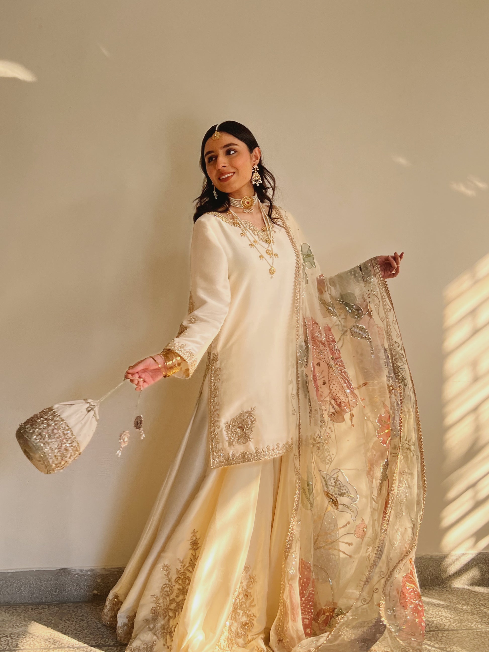 Grace meets artistry in our HandPainted Sharara Set  Komal, a timeless ensemble designed to make every moment feel special. This elegant 3-piece set features.
