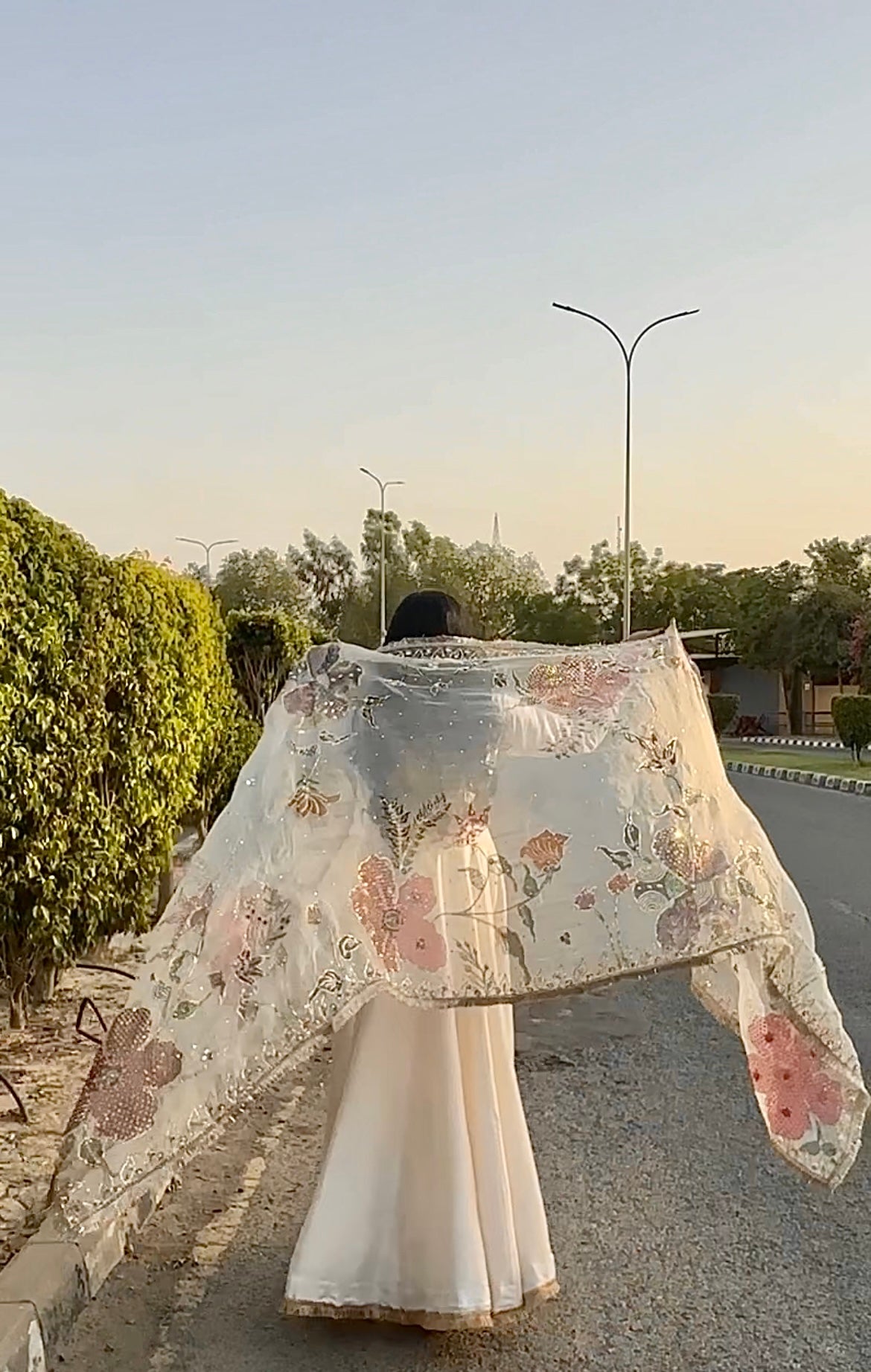Embrace timeless sophistication with Najma, a meticulously crafted three-piece festive ensemble tailored for life's most memorable moments. This distinguished collection unites a hand-painted pure organza dupatta with refined raw silk construction—featuring an intricately designed Peshwas and coordinating churidar pants. Each component reflects superior artisanal technique and premium fabric selection, creating a cohesive look that commands presence at weddings, engagements, and celebratory occasions. The interplay of luxurious textures and thoughtful design elevates your presence with understated elegance and cultural grace.