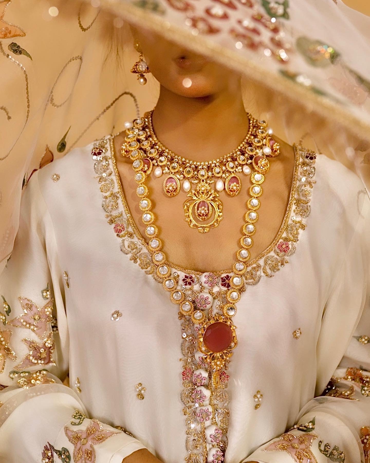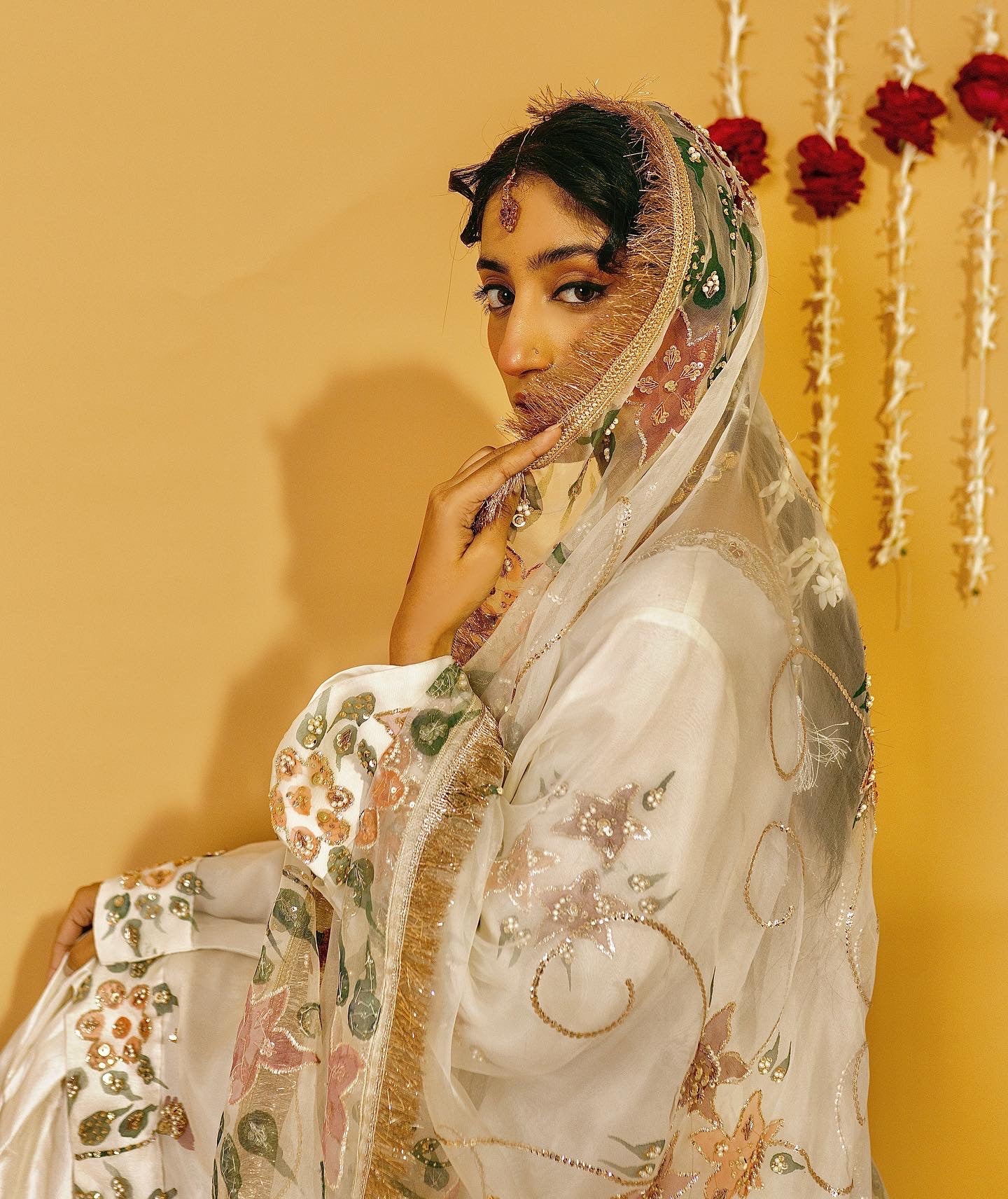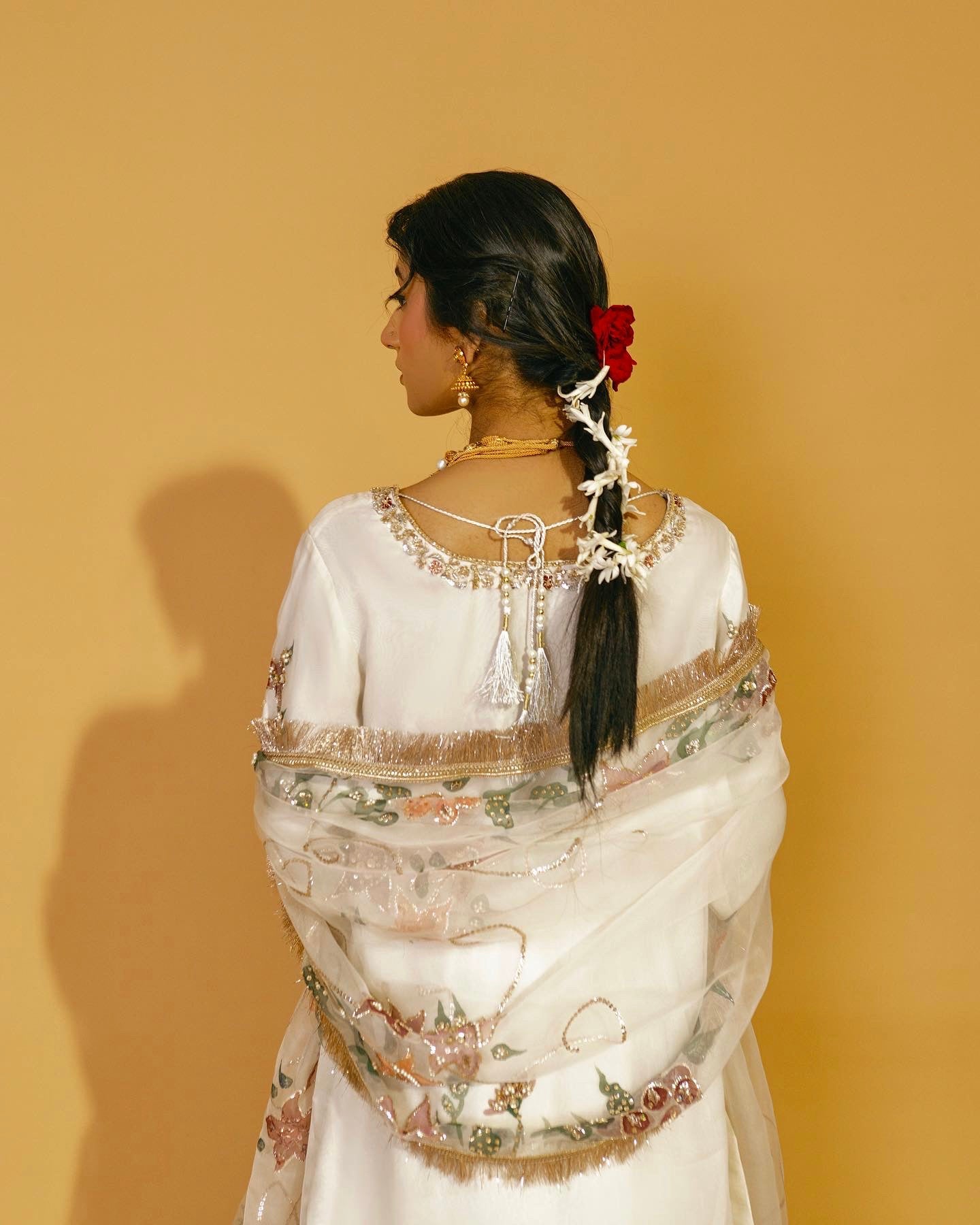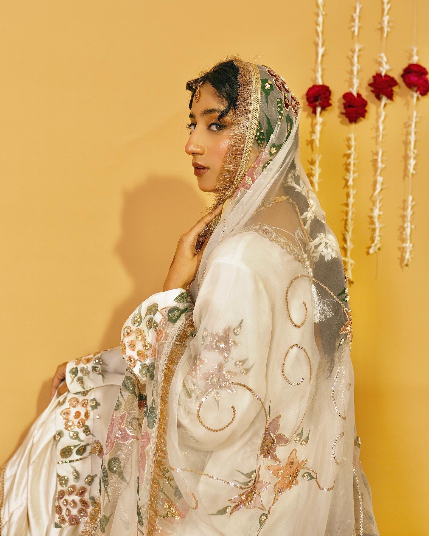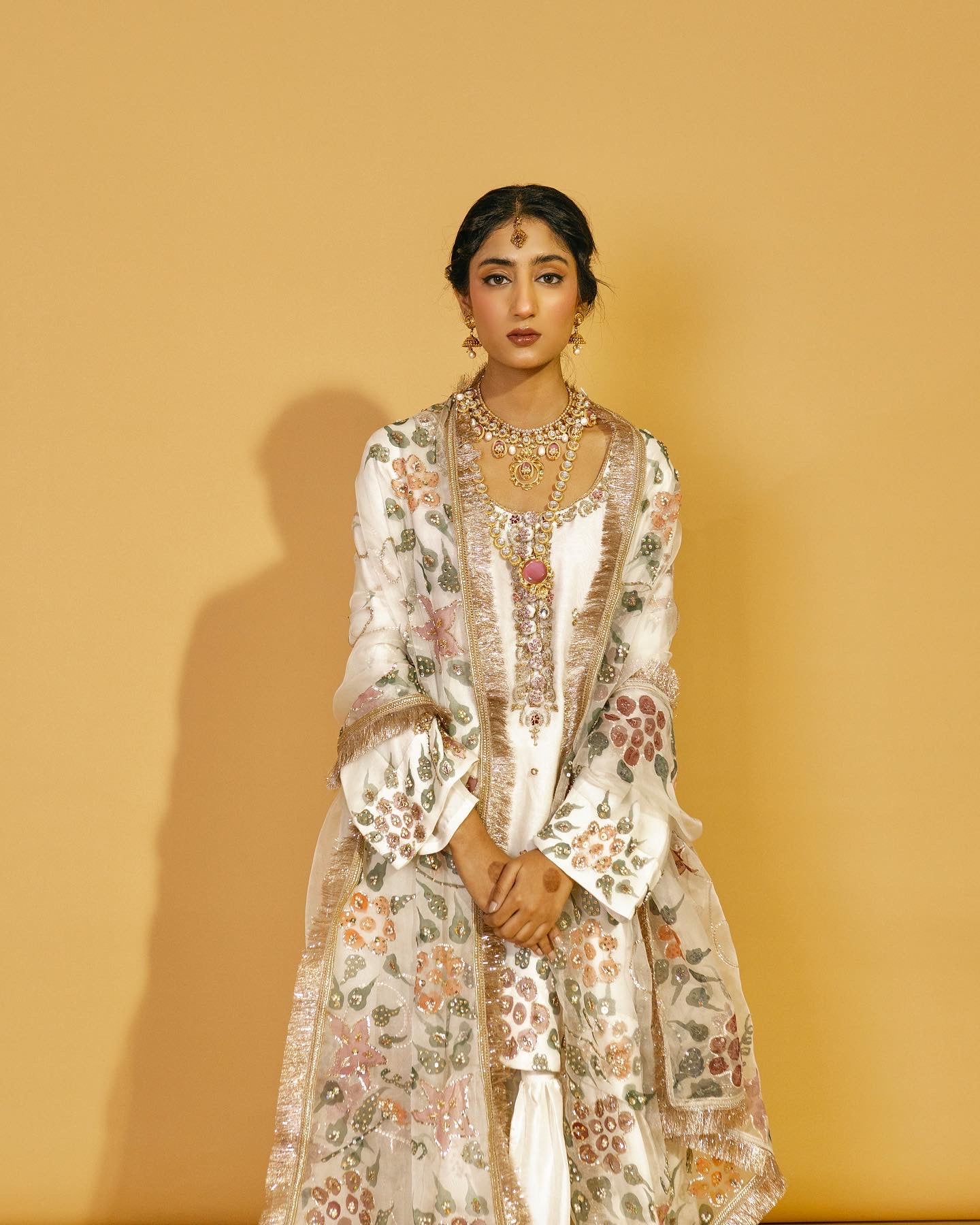Discover refined elegance with Noor Jehan, an expertly curated three-piece festive collection crafted for your most significant celebrations. This distinguished ensemble combines a hand-painted pure organza dupatta with an ornately embellished raw silk shirt and coordinating raw silk gharara, each component demonstrating exceptional artisanal execution. Ideal for weddings, engagements, and festive occasions, the collection showcases premium natural textiles and intricate embellishment work, creating a sophisticated silhouette that honors traditional craftsmanship while projecting contemporary grace and refinement.