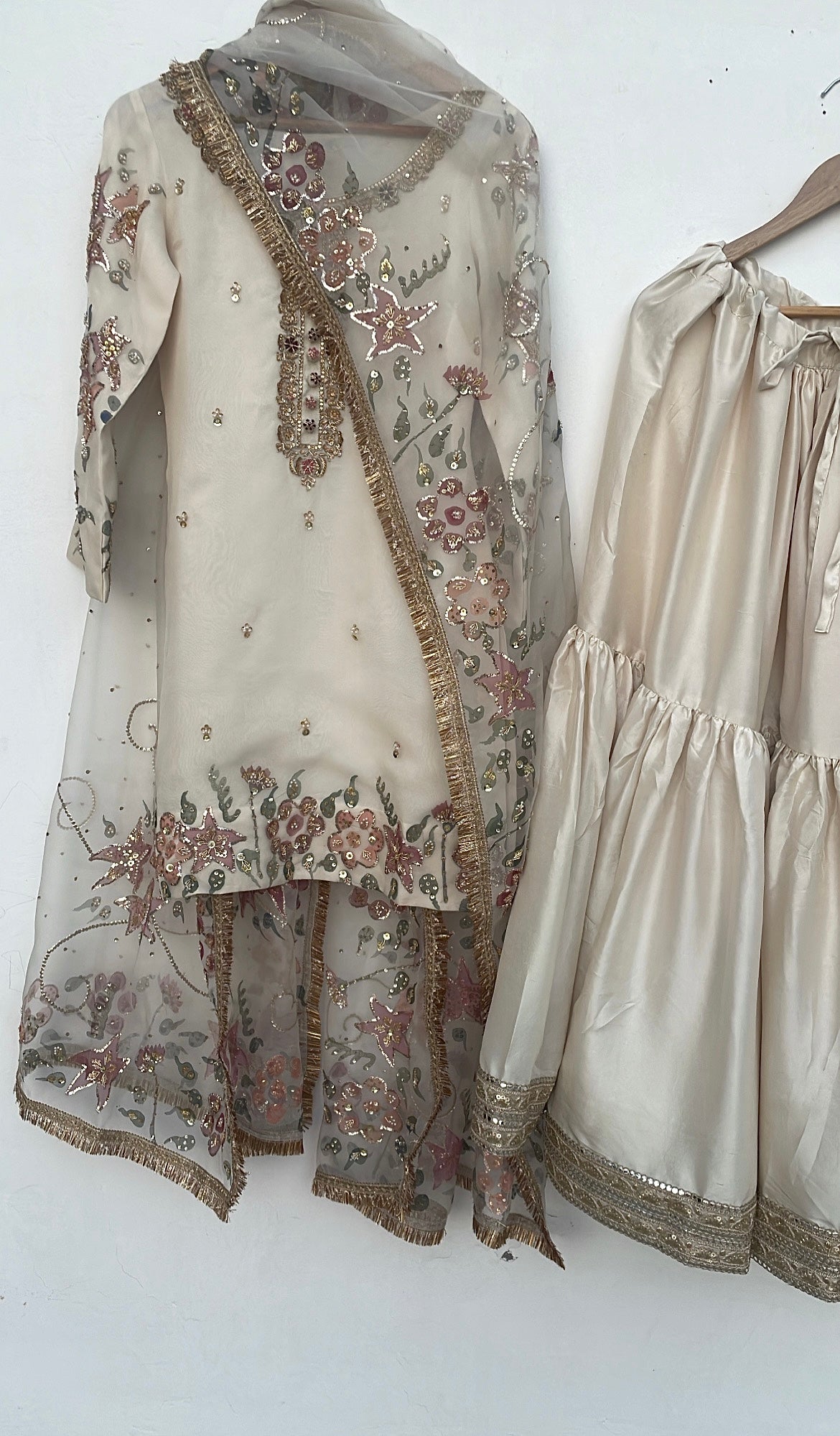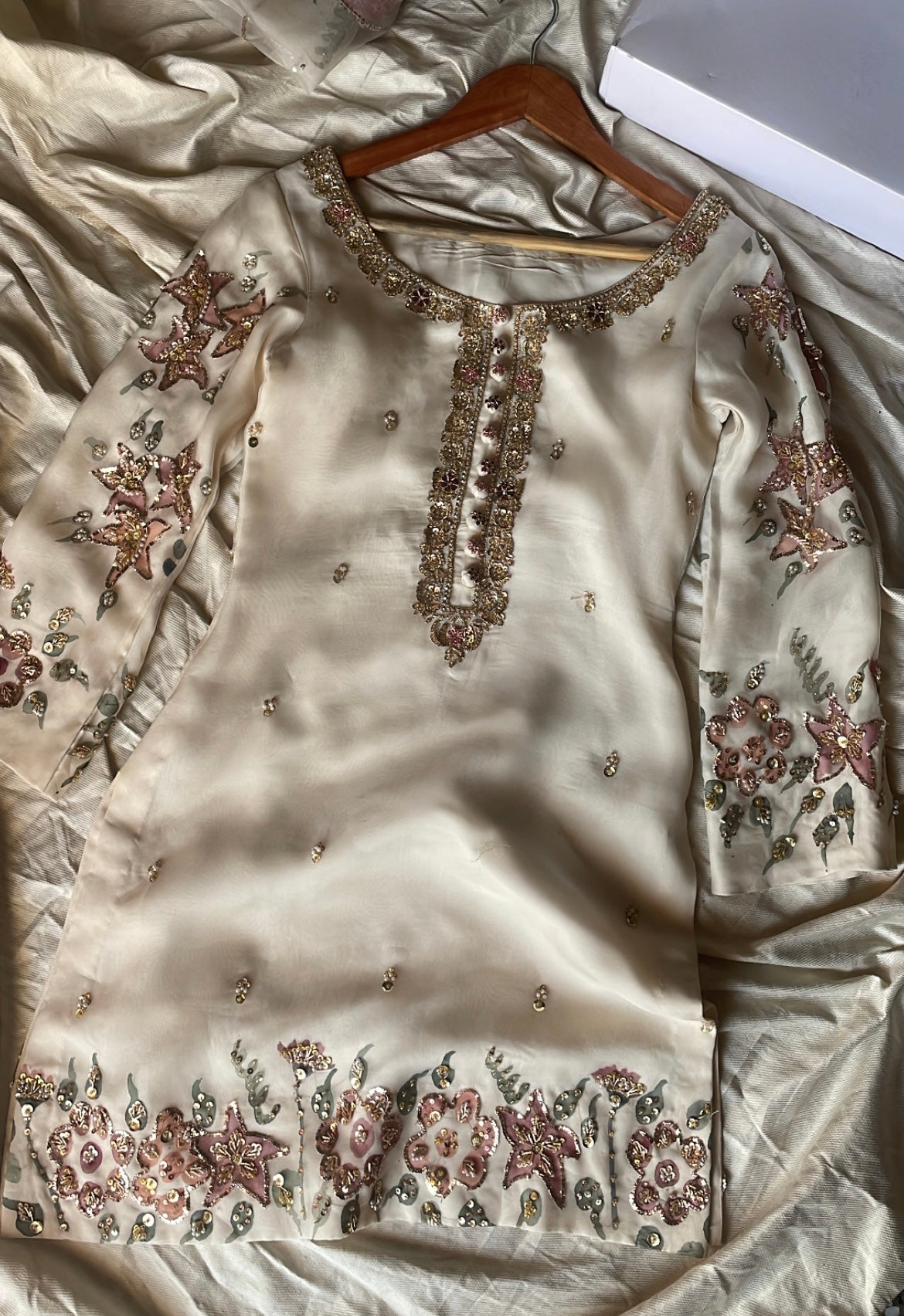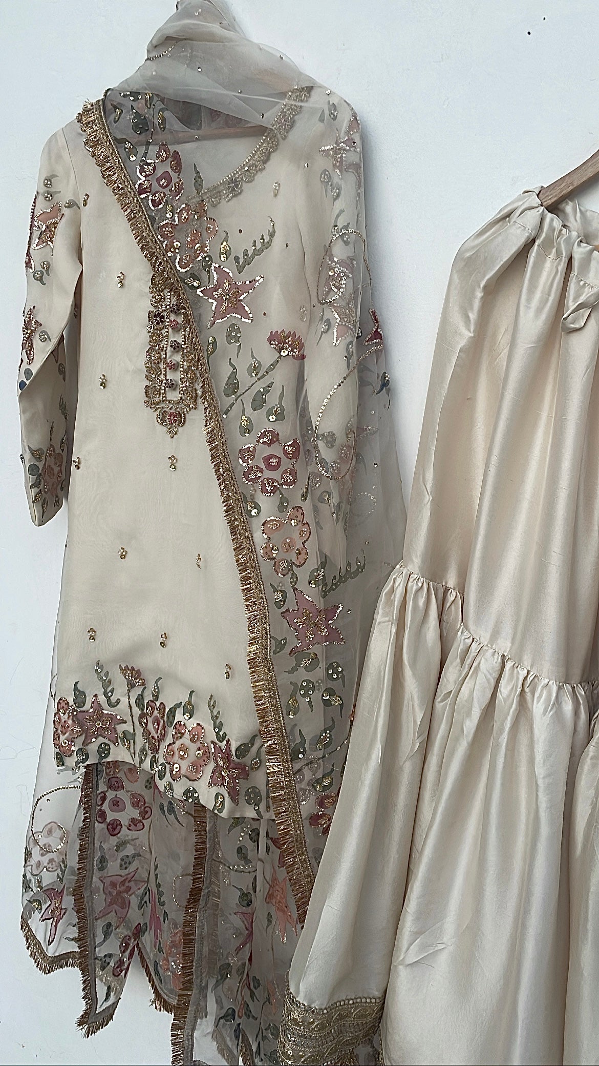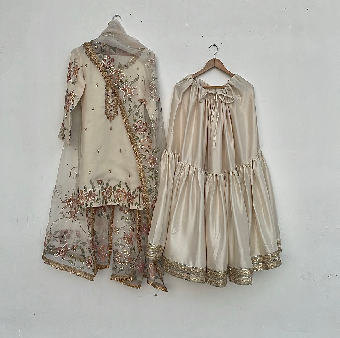 At Maria Sajjad, each piece is made-to-order with meticulous handcrafting. This chart serves as a universal size guide to help you select the closest fit. Measurements are in inches, and slight variations may occur based on silhouette, embellishment, and flare. For bespoke tailoring, we also accept custom measurements to ensure your outfit fits perfectly.