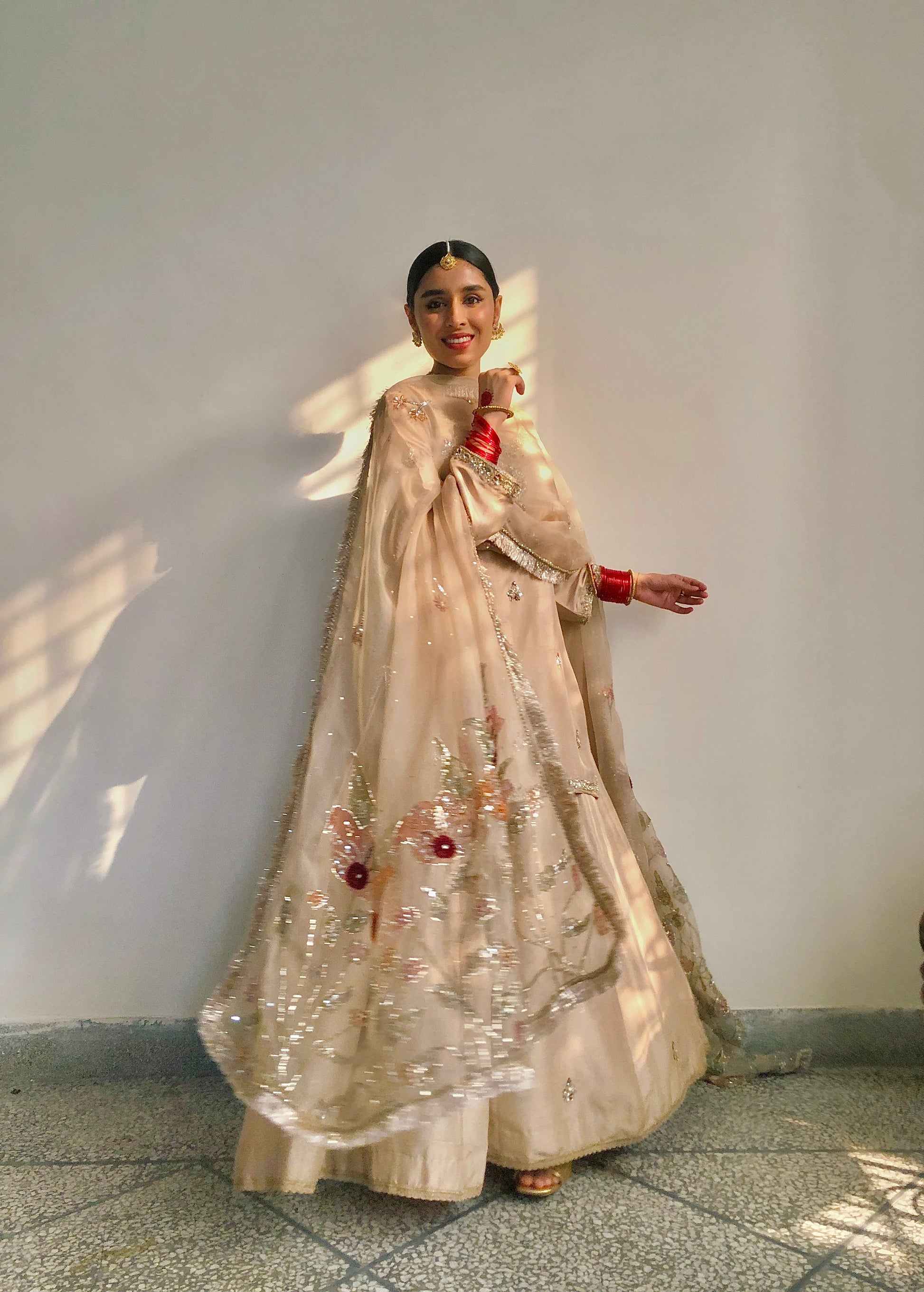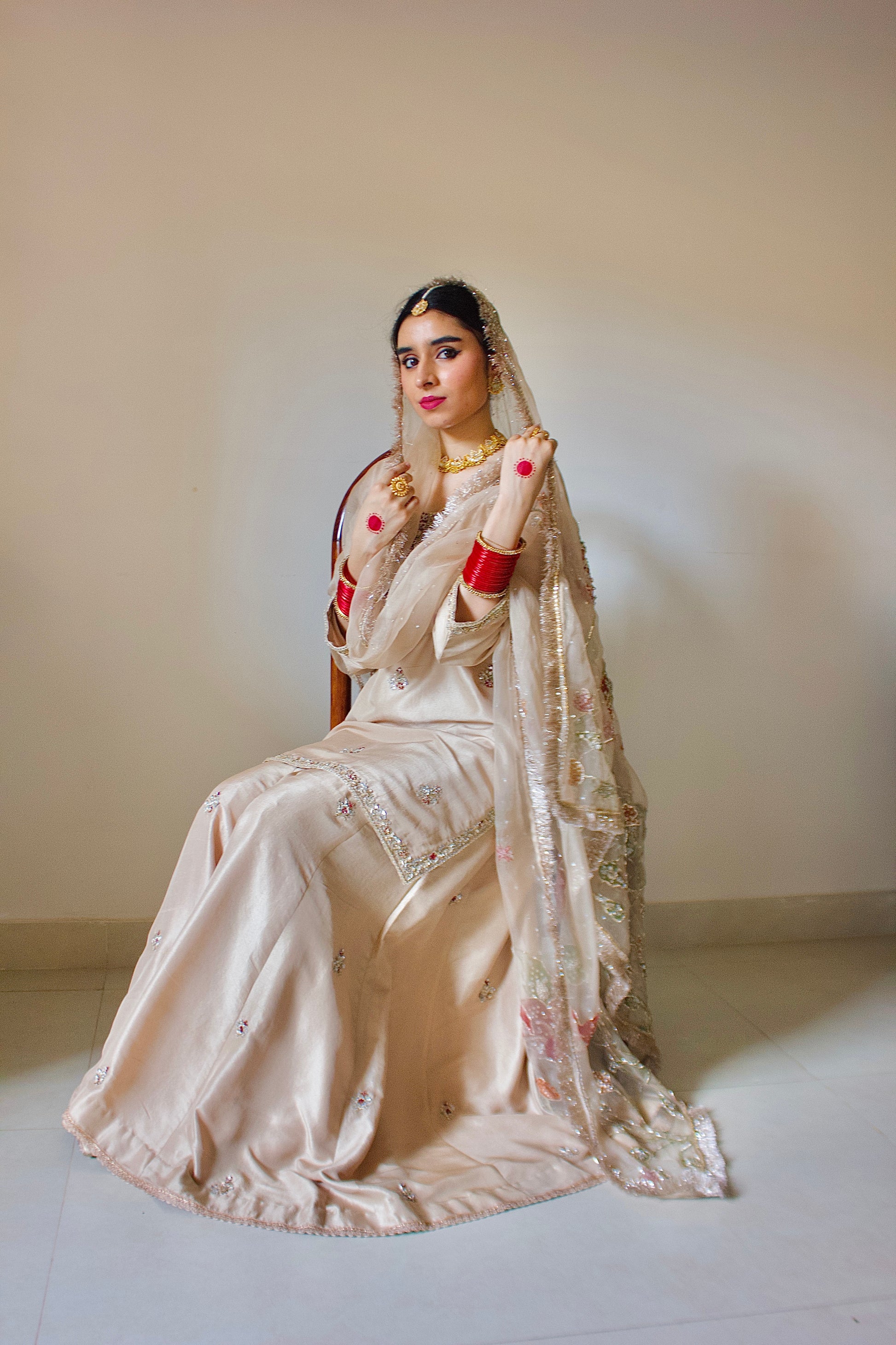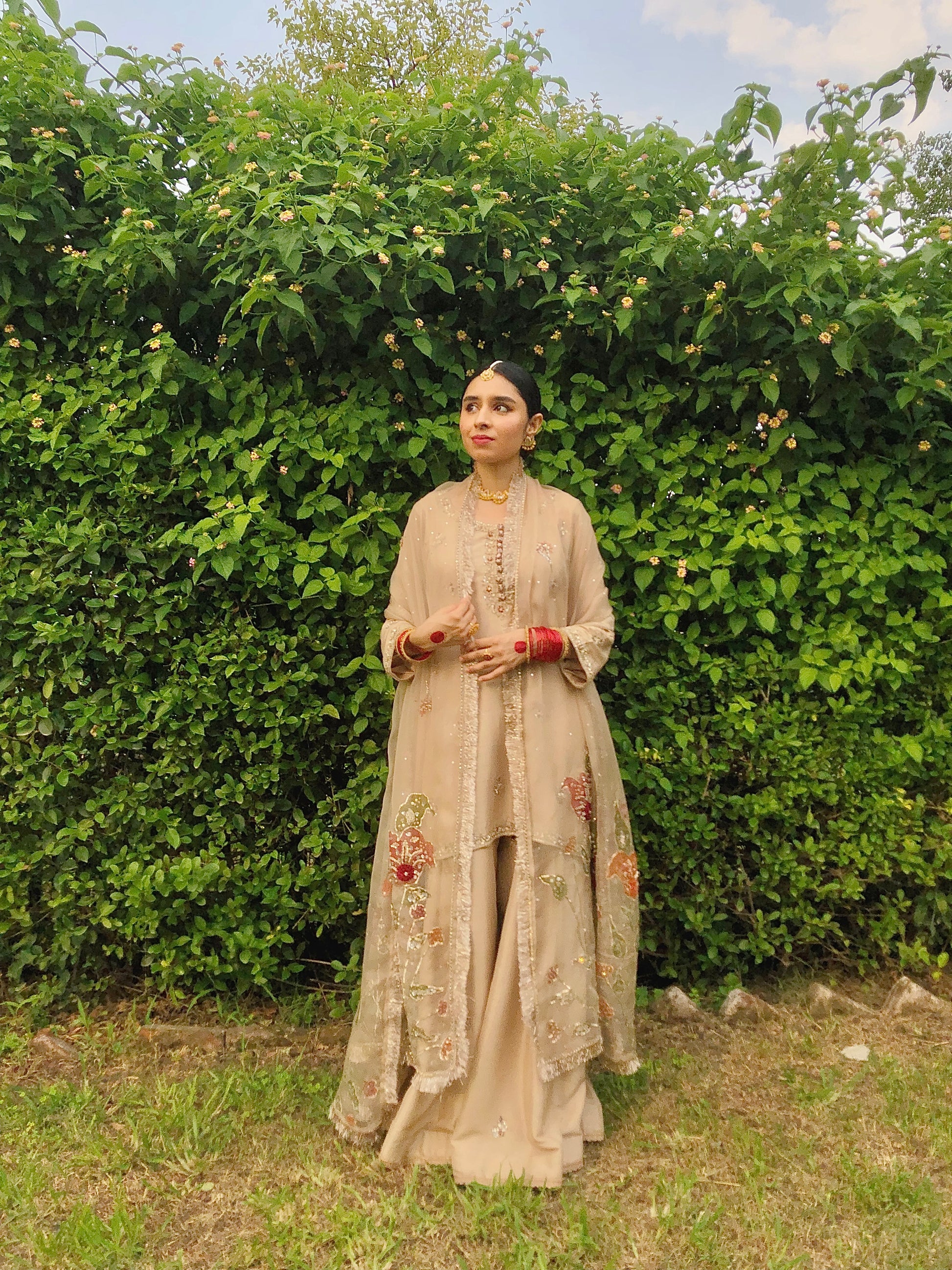 Embrace refined elegance with our Rano festive collection—a sophisticated three-piece ensemble crafted for your most important celebrations. This distinguished set combines a hand-painted pure organza dupatta with an artfully embellished raw silk shirt and coordinating embellished raw silk sharara pants, each piece reflecting meticulous artisanal execution and premium quality. Designed for weddings, engagements, and festive occasions, this ensemble delivers the sumptuous materials and intricate detailing that create an unforgettable impression of grace and timeless sophistication.