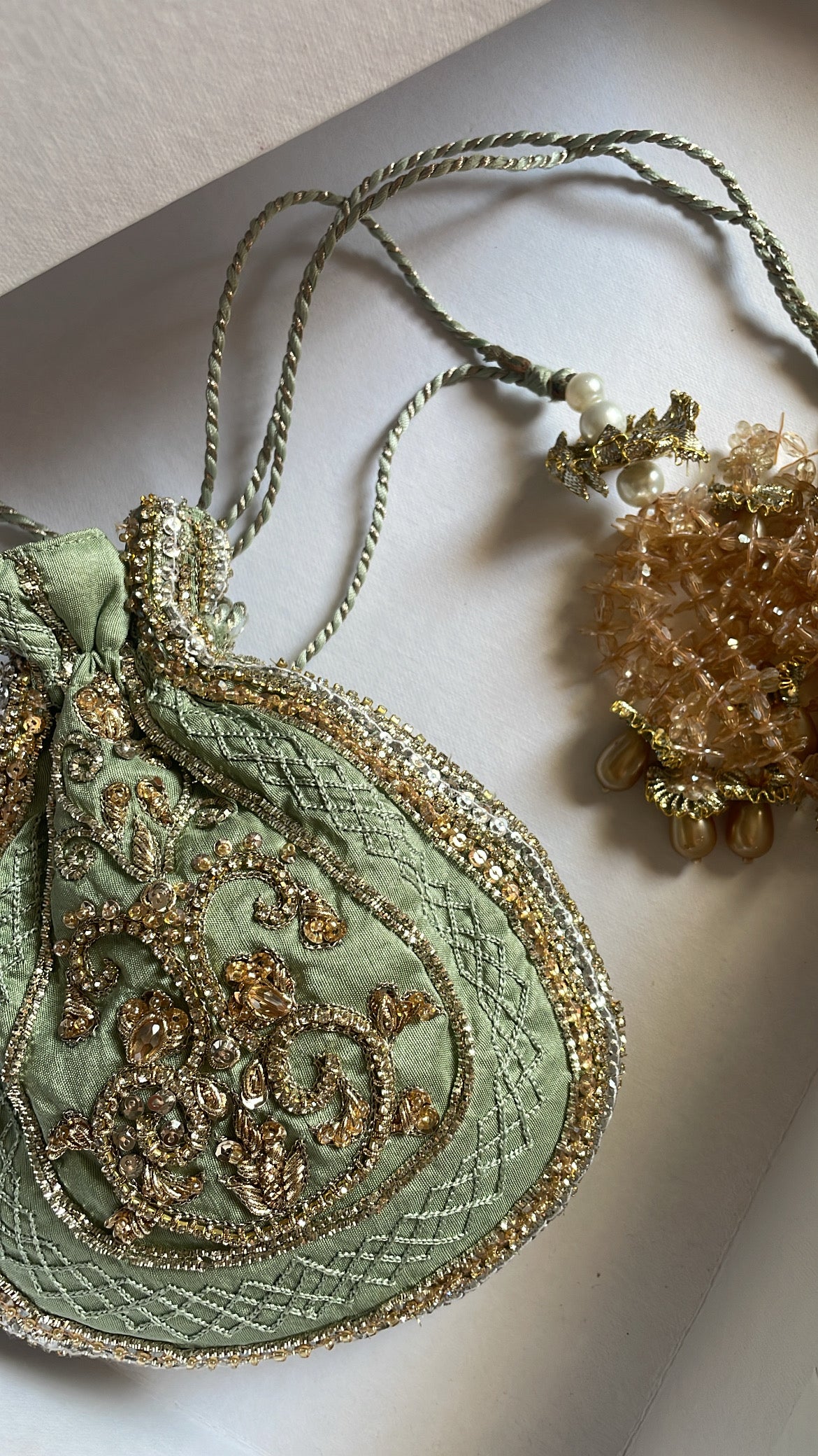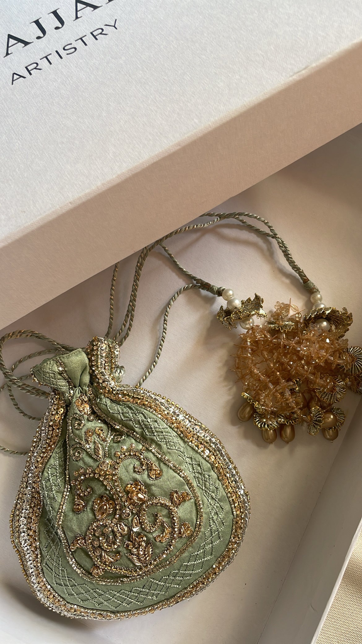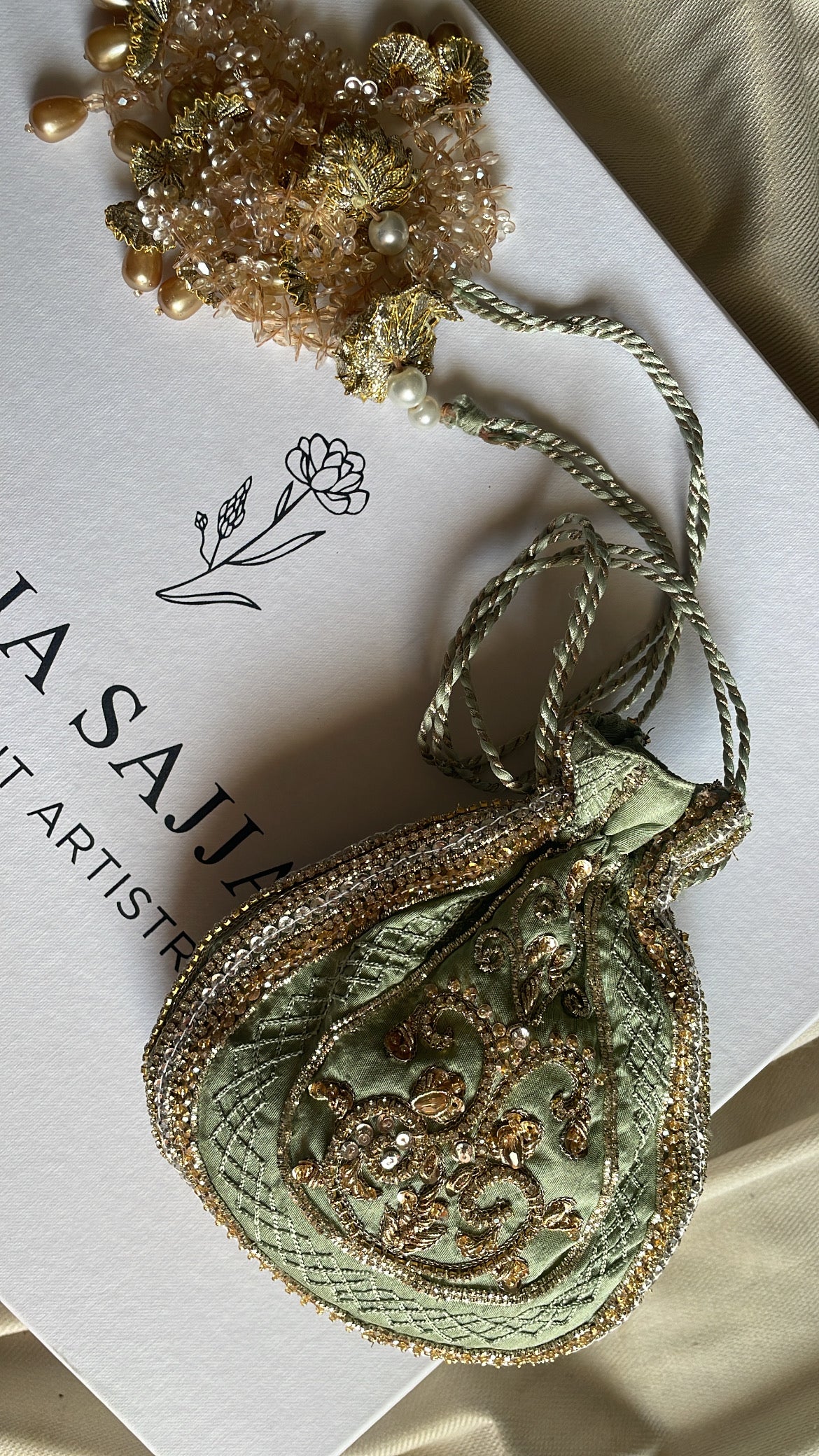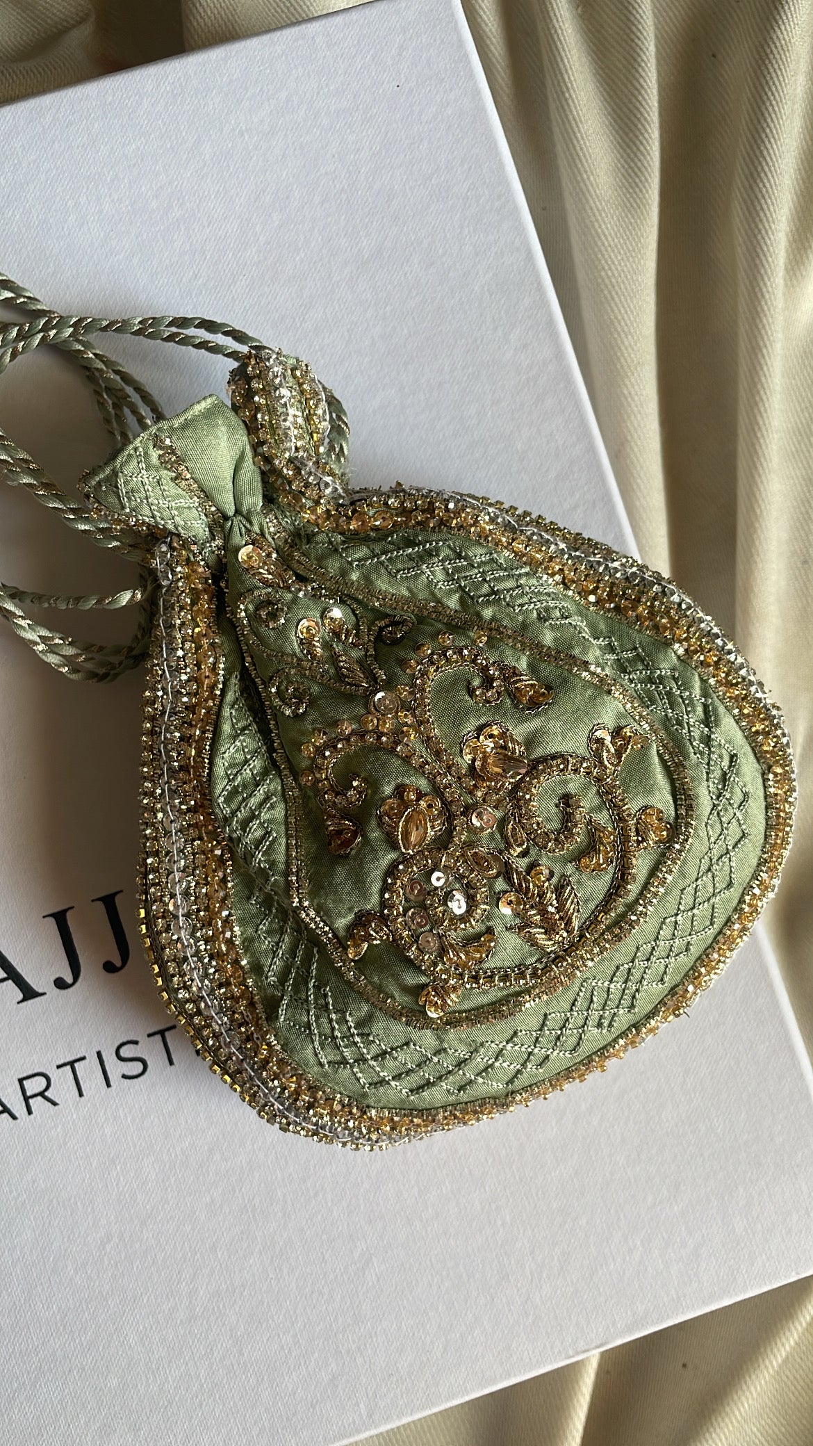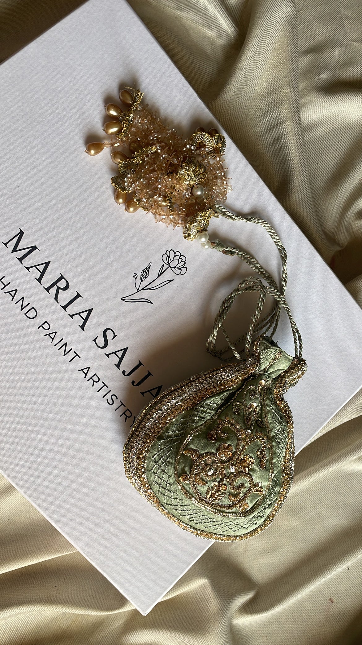 Elevate your formal wardrobe with this meticulously crafted Embellished Potli Bag, designed for the discerning woman who appreciates sophisticated accessories. Featuring elaborate hand-embroidery complemented by lustrous beads, sequins, pearls, and premium zari detailing, this piece seamlessly transitions from wedding celebrations to festive gatherings and upscale evening events. A testament to traditional craftsmanship merged with contemporary style sensibilities.